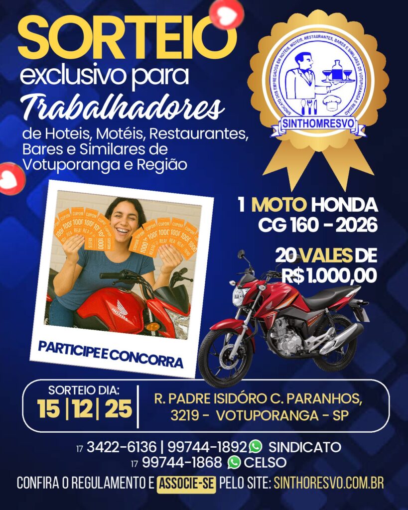 Sorteio exclusivo para Trabalhadores da Categoria;