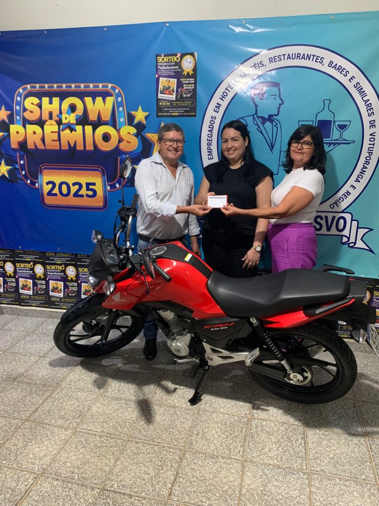 Foi realizada a entrega da moto sorteada entre os contribuintes, em ação promovida pelo sindicato como forma de reconhecimento e valorização daqueles que apoiam o trabalho sindical.